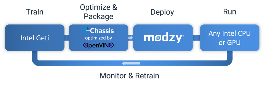 The Intel Geti x Modzy integrated solution makes it easy for teams to build computer vision powered applications faster.